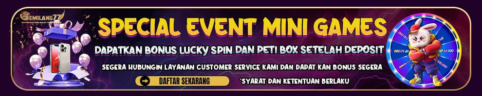 Syarat & Ketentuan : ~> GEMILANG77 Mengadakan Event Special Tahun Baru Panjat Turnover dengan Hadiah Utama Sebesar Rp.1.000.0000 ~> Bonus Tahun Baru akan di bagikan pada tanggal 1 - January - 2025 pada jam ( 01:00 AM ) ~> Bonus akan di hitung dari Turnover Semua permainan (All Games) periode ( 25 - Desember - 2024 s/d 31 - Desember - 2024 ) ~> Pembagian Bonus akan di berikan dengan Turnover Minimal Rp.2.000.000,- ~> Berikut adalah list Hadiah yang di berikan kepada pemenang : ~> Berikut ini merupakan cara perhitungan bonus Freespin :